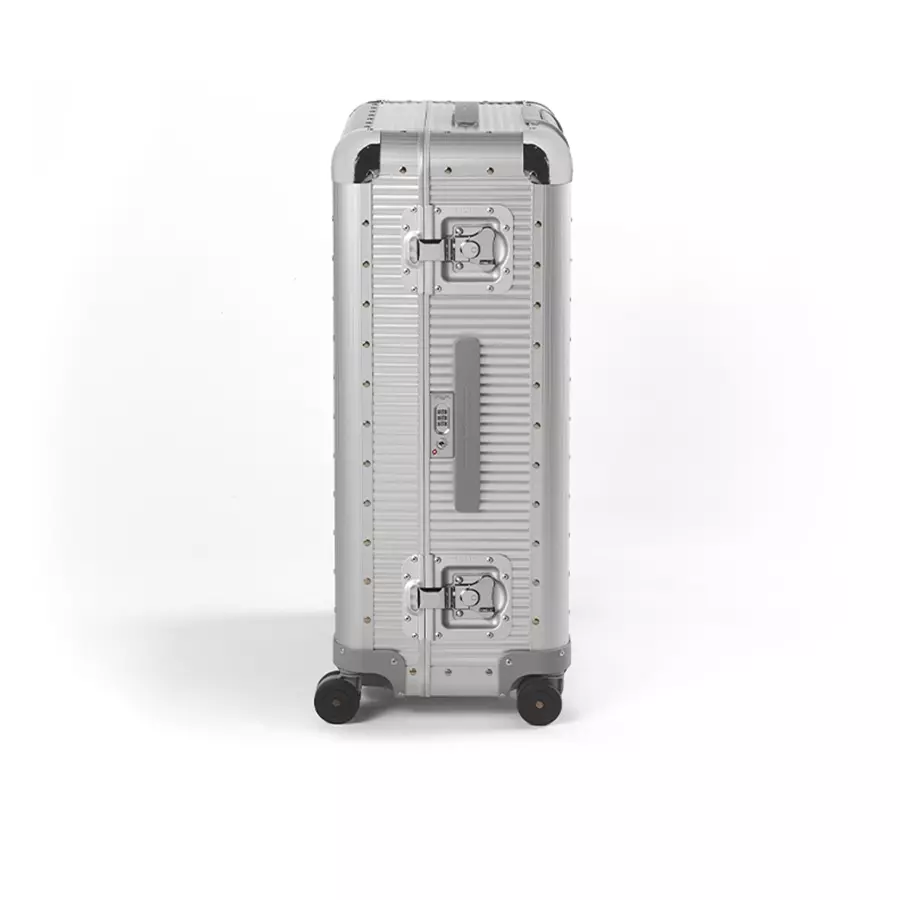 Bank S is a sporty and dynamic version of the collection. The easy grip handles make lifting the suitcases easier and the dual wheels make transport effortless and smooth. Meticulous attention to internal details together with the aluminum shells, and the Butterfly Locks give the collection the unmistakable Bank style.