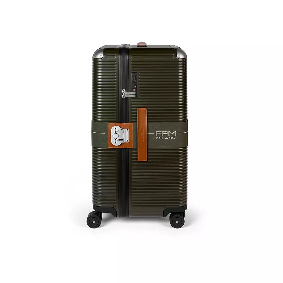 Bank Zip Deluxe is the made in Italy polycarbonate collection that was created for lightness and practicality and is distinguished by its zip closure. The elastic band with embroidered logo closes with the iconic aluminium butterfly lock, the ever-present signature of the brand. the leather handles, aluminium corners and four dual wheels guarantee easy and effortless movement.